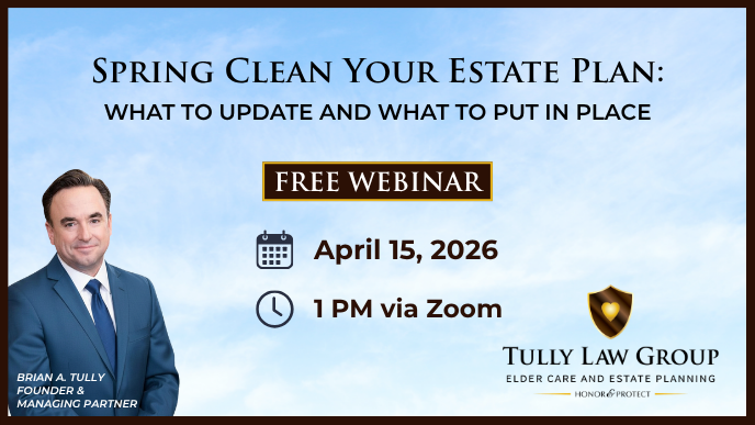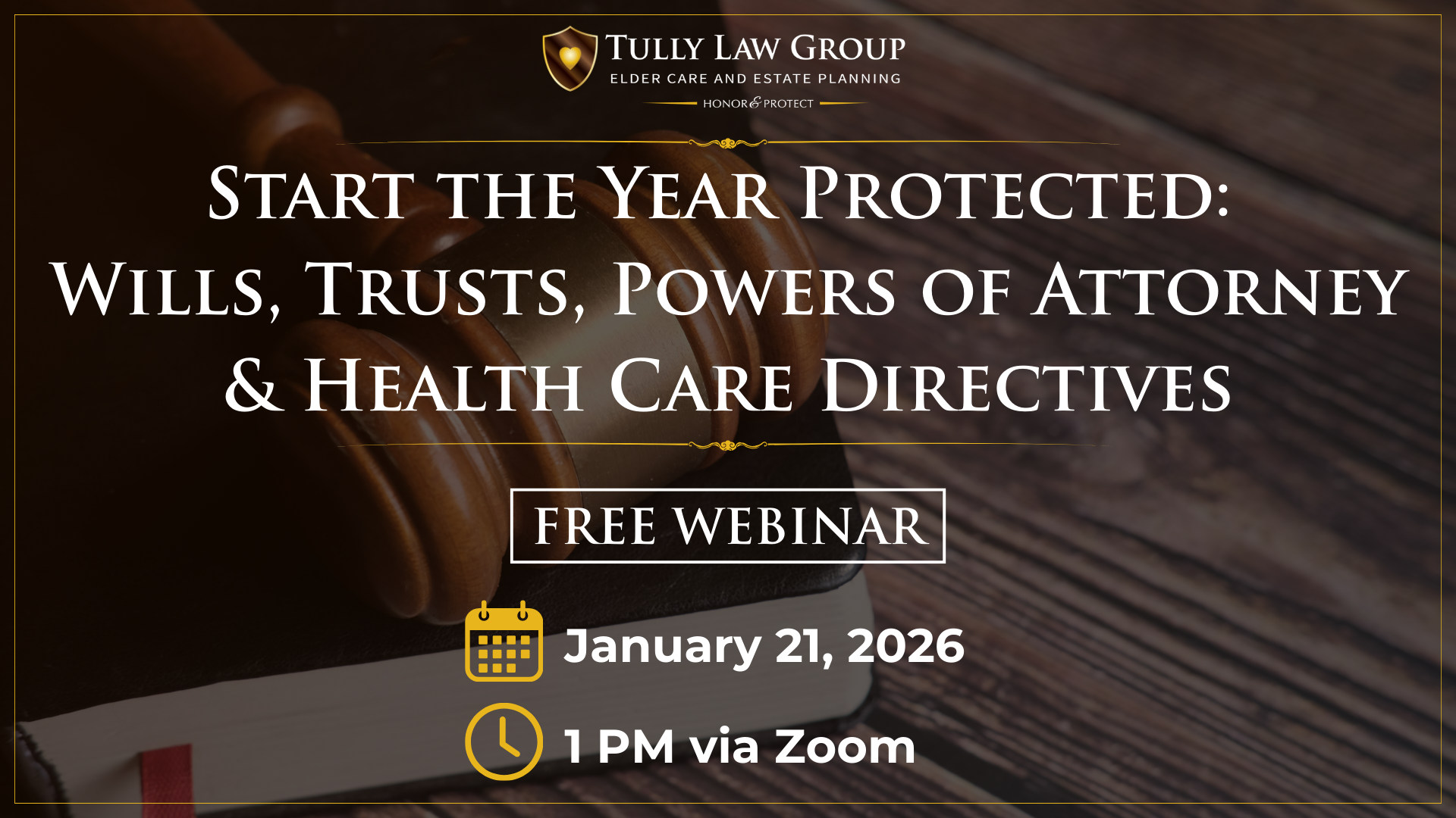The holiday season is meant to bring peace and togetherness — but for many families, questions about aging, caregiving, finances, and legal planning can create stress and uncertainty. Join Tully Law Group for this informative December webinar where we’ll break down the essential steps you can take to protect...